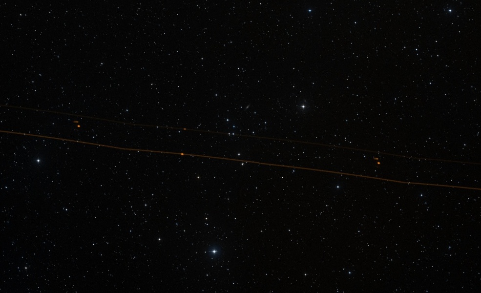 M 65 en haut à droite, M 66 en bas à droite, NGC 3628 à gauche.