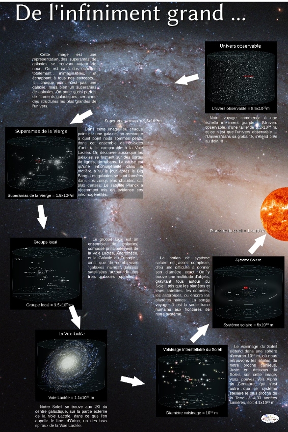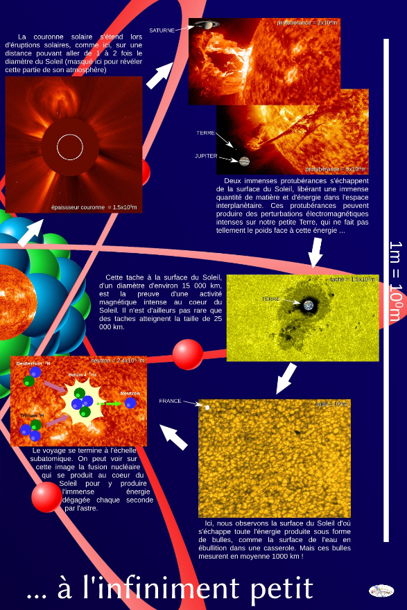 Nous nous sommes efforcés de présenter l’ensemble des moyens d’observation du soleil. Ceci avec nos propres instruments et accessoires : filtre solaire, hélioscope d’Herschel, coronographe,  spectroscope, lunette H alpha, sidérostat… Mais l’observation se fait aussi via des sondes spatiales (SDO, Stereo, Soho…) ou par la radioastronomie. Images, vidéos et ambiance sonore en témoignent.