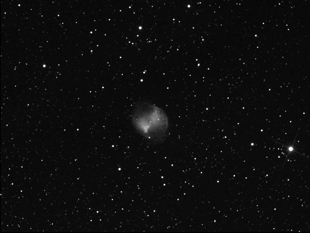 Wouaaaaouh… La nébuleuse des onomatopées ! Préparez-vous à un choc visuel… L’une des plus proche nébuleuse planétaire (moins de mille années lumière), la plus large visuellement, elle est affublée de nombreux sobriquets, comme l’atteste la légende de l’image ci-dessus. M 27 est facilement repérable en partant de la pointe de la Flèche (L’étoile Delta de la Flèche) et en remontant de trois degrés vers le nord.