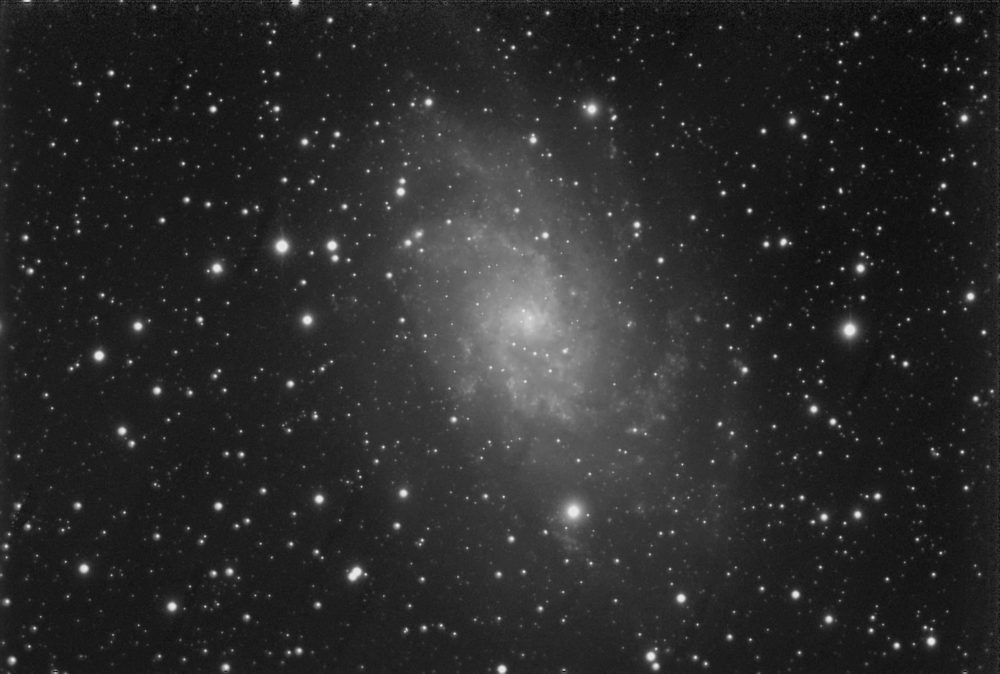 Distante de 2,5 à 3 millions d’années-lumière, Messier 33 fait partie de l’Amas Local dont elle est le troisième représentant (après M31 et la Voie Lactée). Son diamètre modeste serait compris entre 50000 et 60000 a.l., alors que dans le ciel, du fait de sa proximité, elle occupe une surface bien plus impressionnante de 69×42 minutes d’arc.
