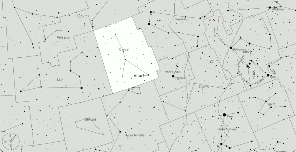 Voisinage : Asellus Borealis, Asellus Australis, Acubens (Can); Procyon (CMi)