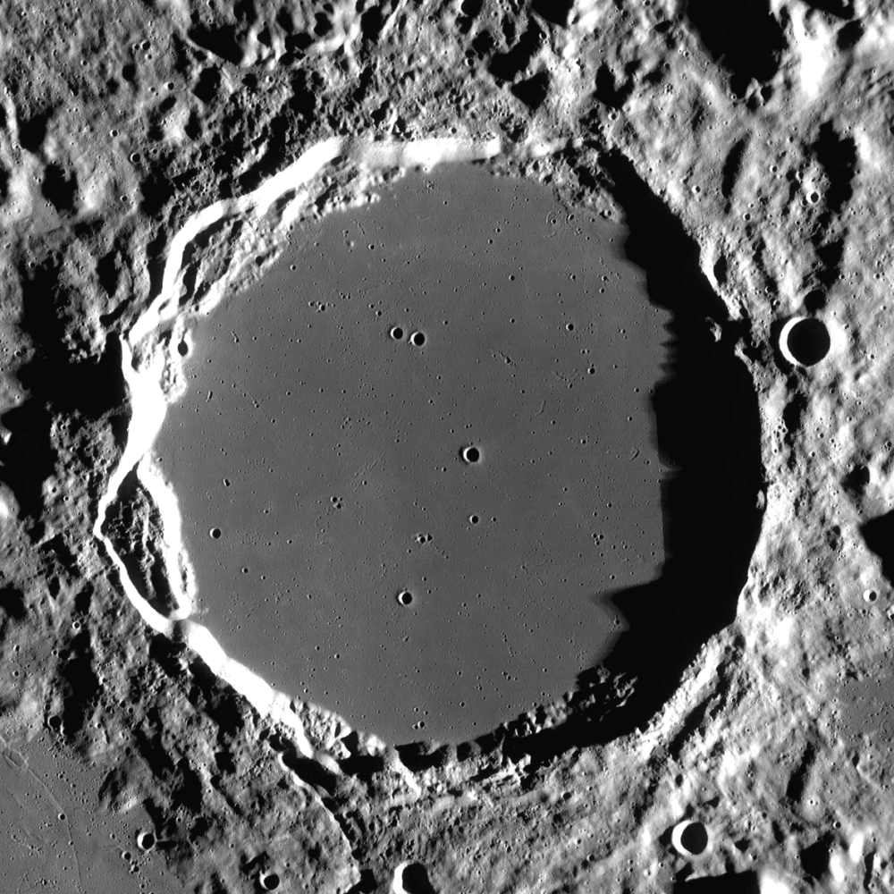 Profondeur : 2 000m. presque aussi sombre que Platon avec 2 petits craterlets.
