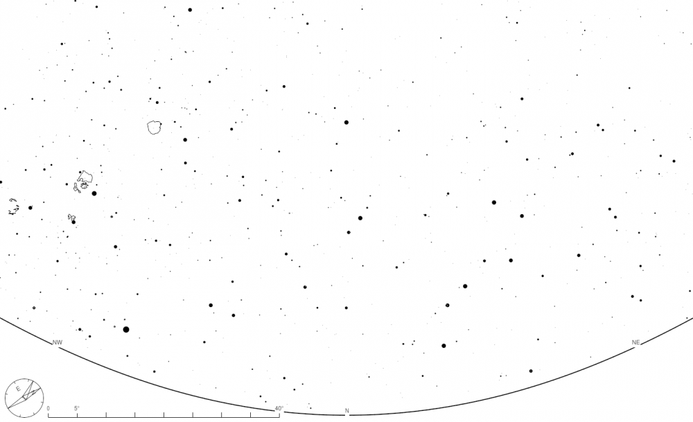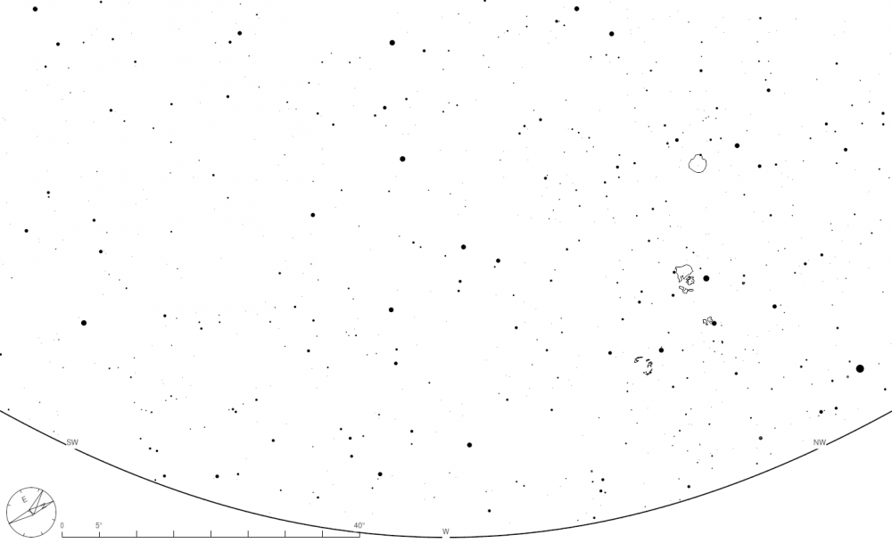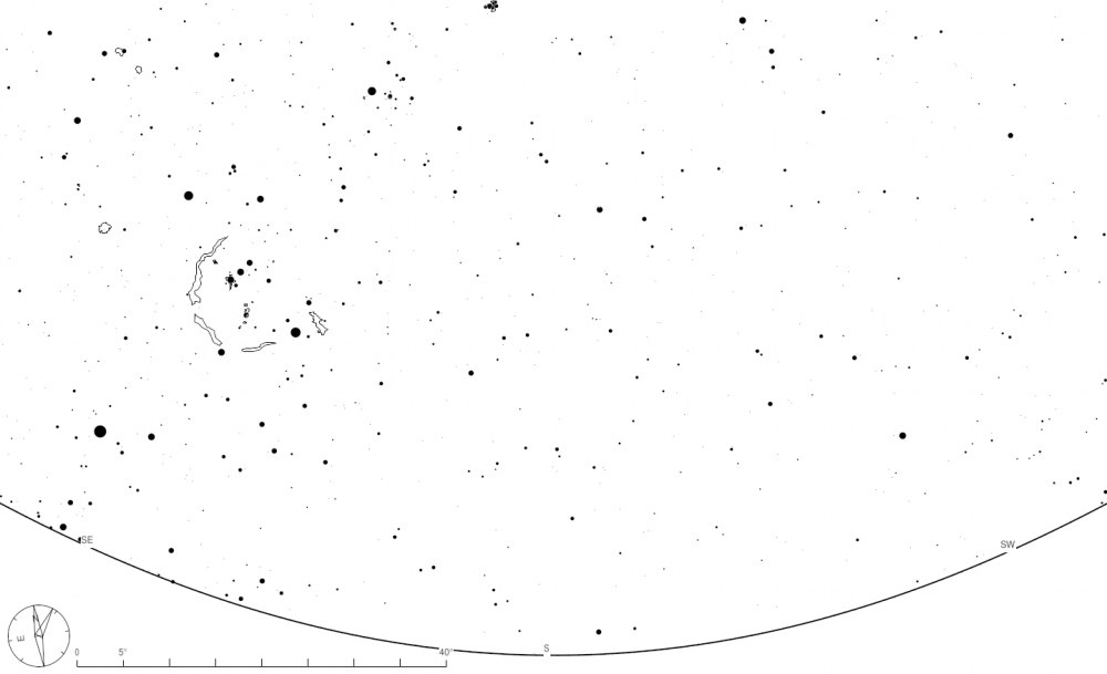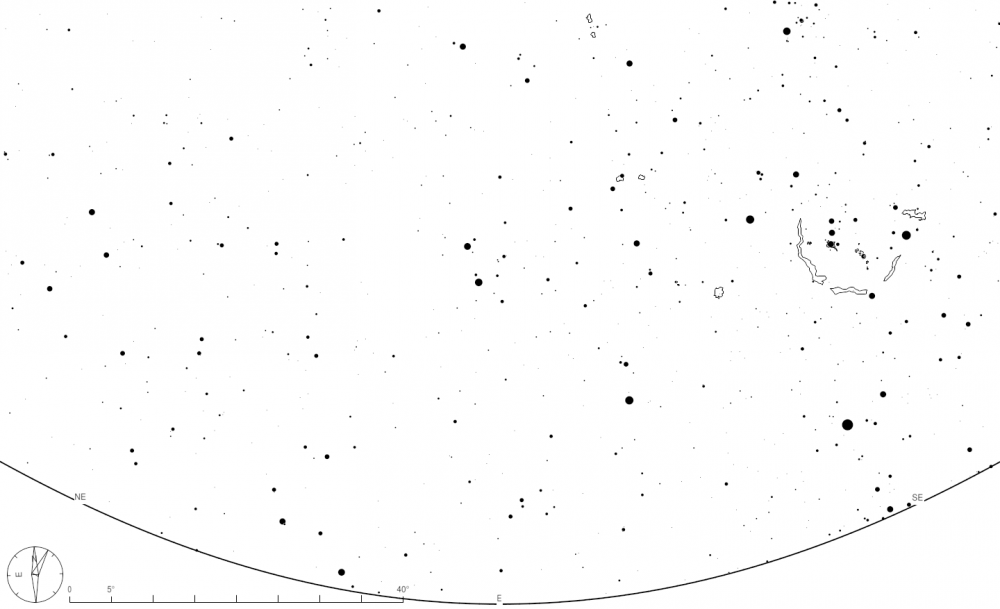 Les cartes célestes suivantes montrent le ciel tel qu’il sera en temps local le 1er décembre à 00h00, le 15 décembre à 23h00 et le 31 décembre à 22h, au nord sud, est, ouest et au zénith et à une latitude de près de 48 ° nord. Chaque carte a un champ de vision de 120°. Pour mieux coller à la réalité du terrain, elles ne contiennent aucune indication, aucun tracé de constellation, aucun nom d’étoile ou d’objet du ciel profond. Afin de pouvoir réutiliser ces cartes chaque année, les planètes n’y sont pas représentées. Les étoiles sont affichées jusqu’à la magnitude 6,5, correspondant à la magnitude limite à l’œil nu dans un très bon ciel, sans lune ni lumière parasite.