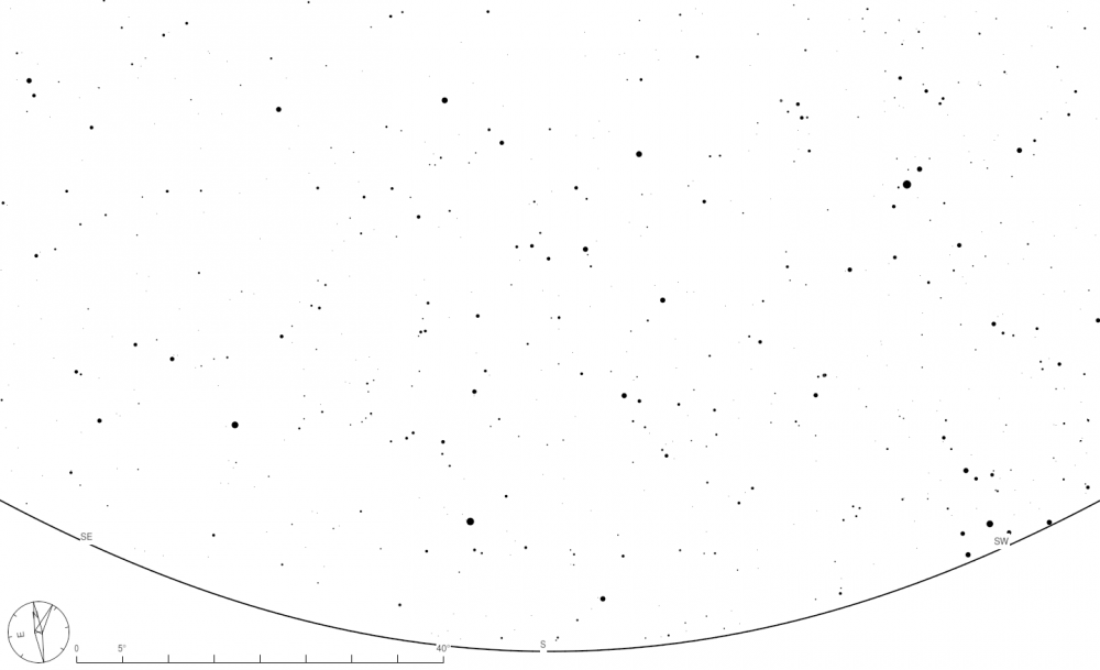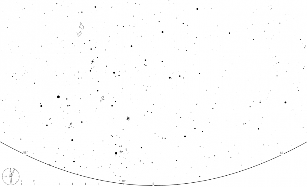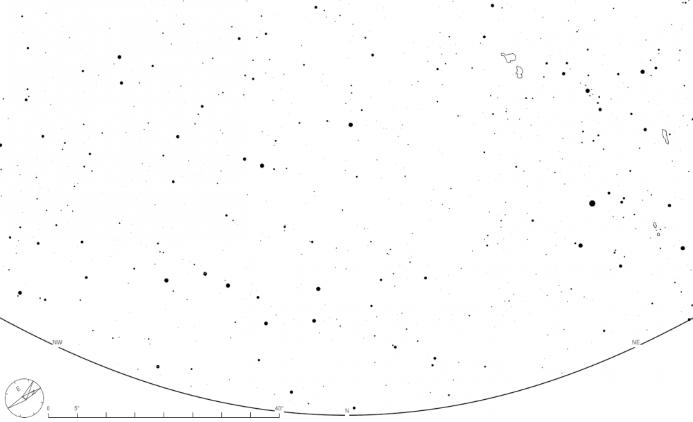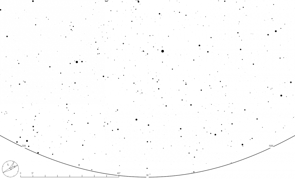 Les cartes suivantes montrent le ciel tel qu’il sera le 1er octobre 00h00, 15 octobre à 23h00, 31 octobre 22h00 temps local, au nord sud, est, ouest et au zénith et à une latitude de près de 48 ° nord. Chaque carte a un champ de vision de 120°. Pour mieux coller à la réalité du terrain, elles ne contiennent aucune indication, aucun tracé de constellation, aucun nom d’étoile ou d’objet du ciel profond. Afin de pouvoir réutiliser ces cartes chaque année, les planètes n’y sont pas représentées. Les étoiles sont affichées jusqu’à la magnitude 6,5, correspondant à la magnitude limite à l’œil nu dans un très bon ciel, sans lune ni lumière parasite.