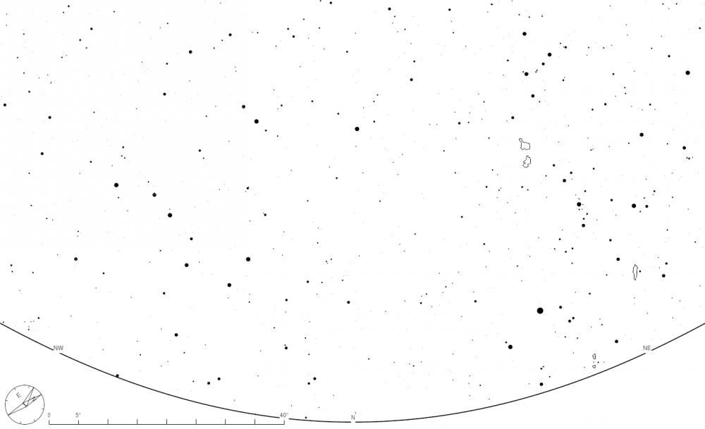 Les cartes suivantes montrent le ciel tel qu’il sera le 1er septembre à 00h00, le 15 septembre à 23h00, le 30 septembre à 22h00 temps local, au nord sud, est, ouest et au zénith et à une latitude de près de 48 ° nord. Chaque carte a un champ de vision de 120°. Pour mieux coller à la réalité du terrain, elles ne contiennent aucune indication, aucun tracé de constellation, aucun nom d’étoile ou d’objet du ciel profond. Afin de pouvoir réutiliser ces cartes chaque année, les planètes n’y sont pas représentées. Les étoiles sont affichées jusqu’à la magnitude 6,5, correspondant à la magnitude limite à l’œil nu dans un très bon ciel, sans lune ni lumière parasite.
