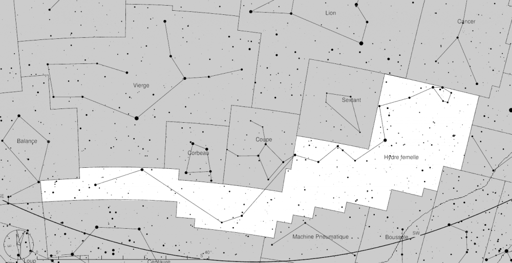 En gras, objet remarquable. En grisé, objet trop bas sur l’horizon pour être observé convenablement à la latitude de 47°.