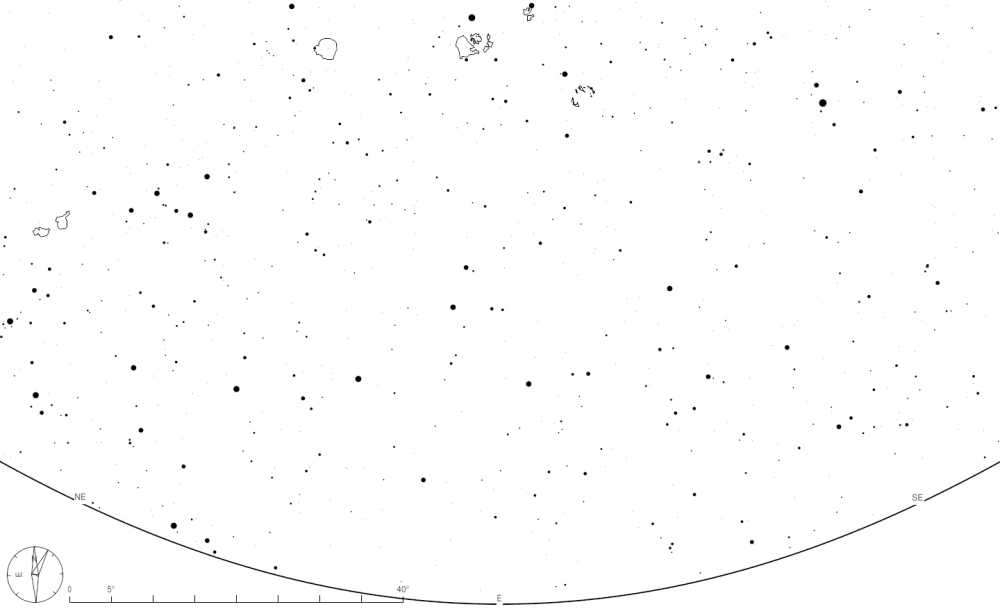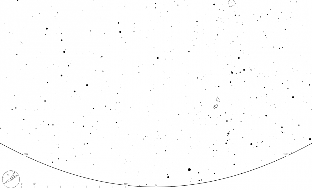 Les cartes célestes suivantes montrent le ciel tel qu’il sera en temps local le 1er août à 00h00, le 15 août à 23h00 et le 31 août à 22h, au nord sud, est, ouest et au zénith et à une latitude de près de 48 ° nord. Chaque carte a un champ de vision de 120°. Pour mieux coller à la réalité du terrain, elles ne contiennent aucune indication, aucun tracé de constellation, aucun nom d’étoile ou d’objet du ciel profond. Afin de pouvoir réutiliser ces cartes chaque année, les planètes n’y sont pas représentées. Les étoiles sont affichées jusqu’à la magnitude 6,5, correspondant à la magnitude limite à l’œil nu dans un très bon ciel, sans lune ni lumière parasite.