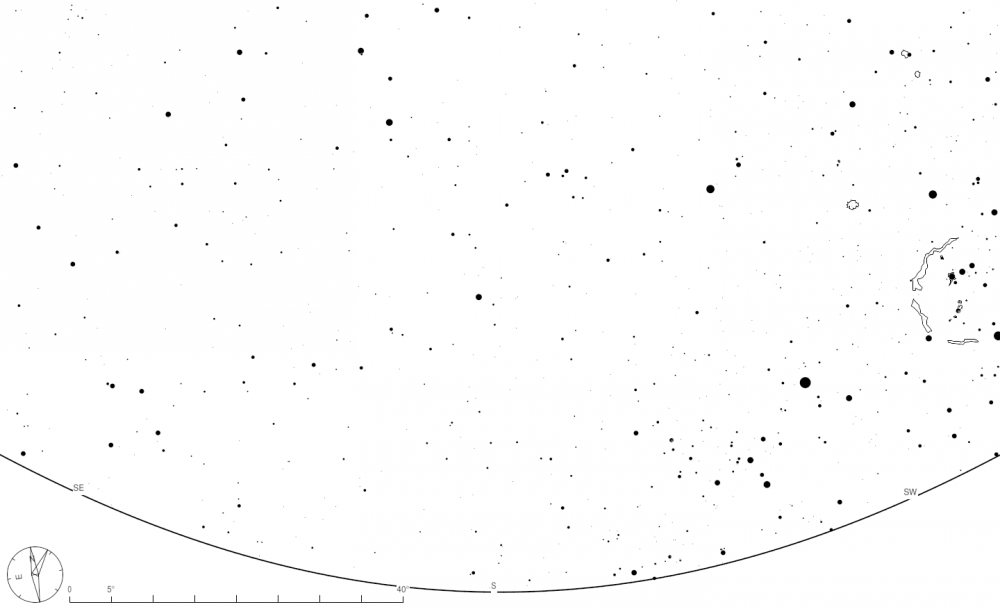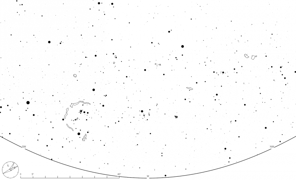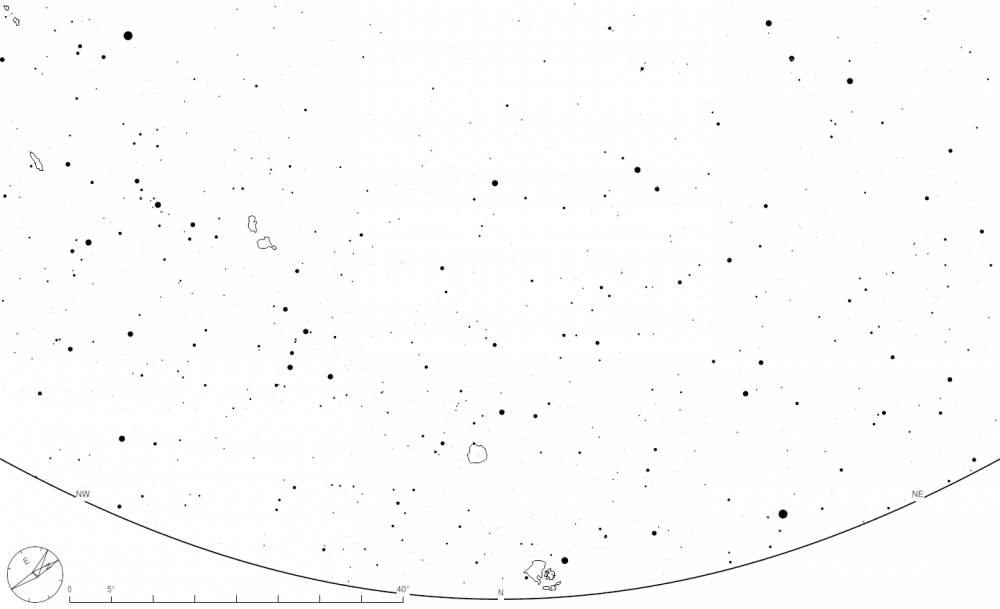 Les cartes célestes suivantes montrent le ciel tel qu’il sera en temps local le 1er mars à 00h00, le 15 mars à 23h00 et le 31 mars à 22h, au nord sud, est, ouest et au zénith et à une latitude de près de 48 ° nord. Chaque carte a un champ de vision de 120°. Pour mieux coller à la réalité du terrain, elles ne contiennent aucune indication, aucun tracé de constellation, aucun nom d’étoile ou d’objet du ciel profond. Afin de pouvoir réutiliser ces cartes chaque année, les planètes n’y sont pas représentées. Les étoiles sont affichées jusqu’à la magnitude 6,5, correspondant à la magnitude limite à l’œil nu dans un très bon ciel, sans lune ni lumière parasite.