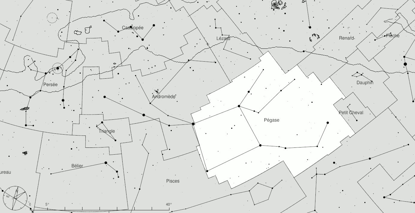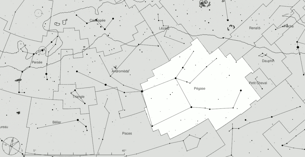 | NGC 7078 | M 15 | AG | 21 30.0 | +12 10 | 6,4 | 11 | 12.3′ | En prolongeant la moitié de la distance Biham/Enif |