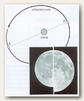 - Le Périgée (près) est à 356 400km et l’Apogée à 406 700km.