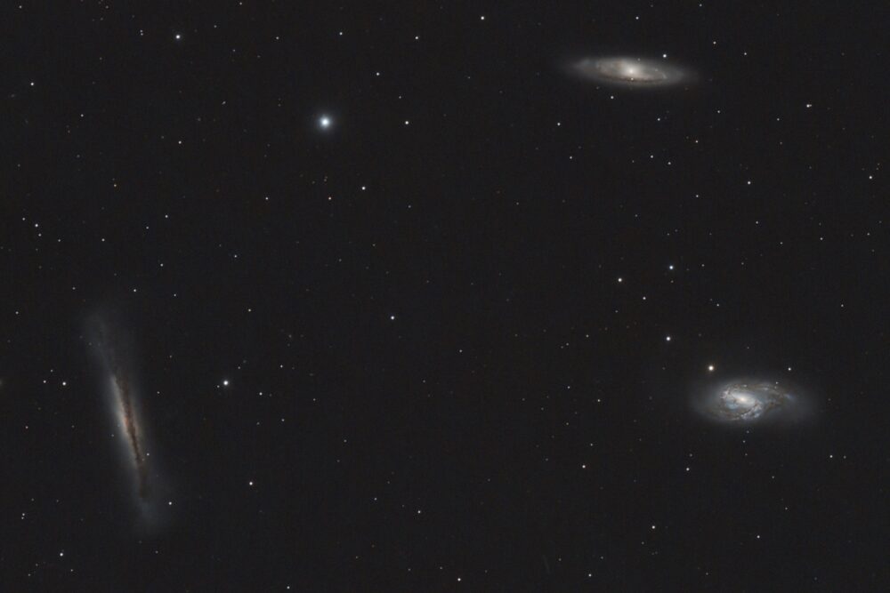 NGC 3607 (en bas au centre) – NGC 3608 (en haut au centre) – NGC 3605 (en bas , à droite de NGC 3607)