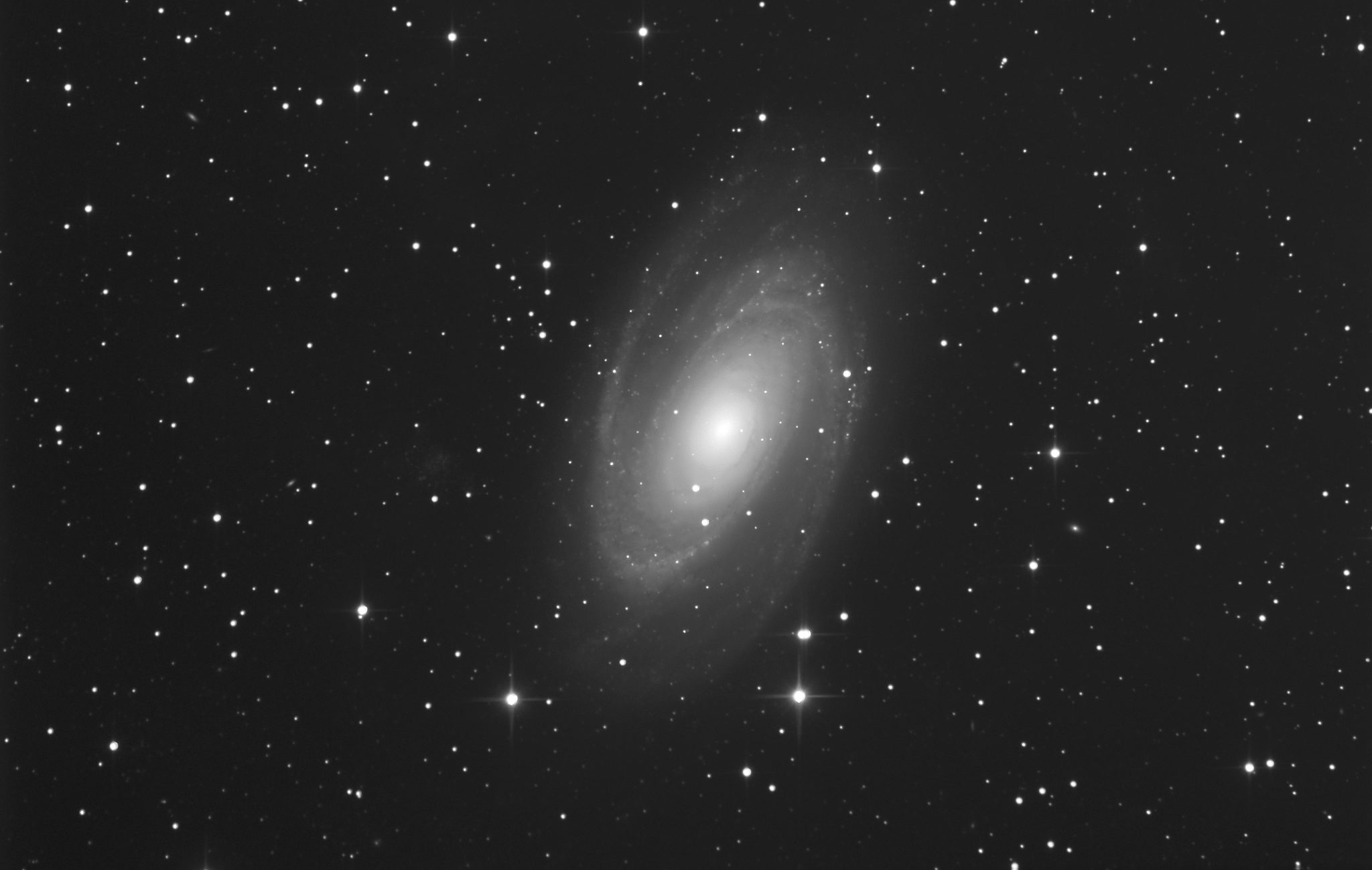 Toujours avec le même matériel. Je n’ai pu profiter que de quelques heures. Pas eu le temps de faire la couleur. L’objet est très peu coloré, de toute façon ! 2h40mn par unité de 2mn seulement, pour éviter de cramer le noyau. Fwhm 3,5″. Conditions météo peu favorables. Pretraitement CCDStack et réductions dans photoshop.