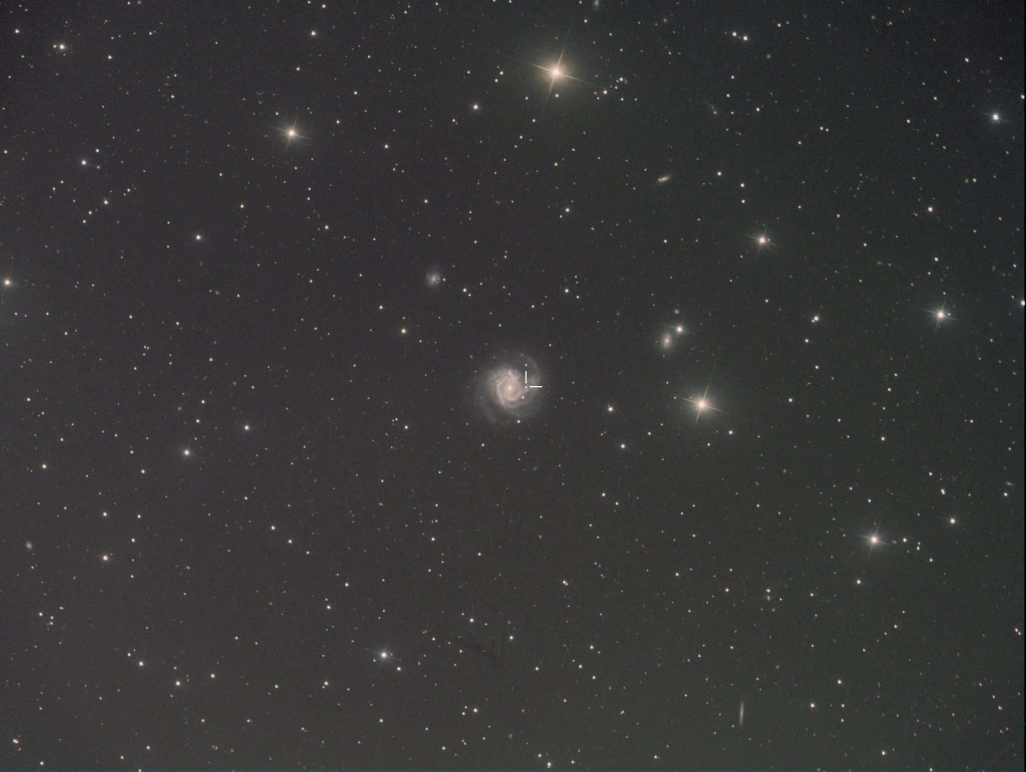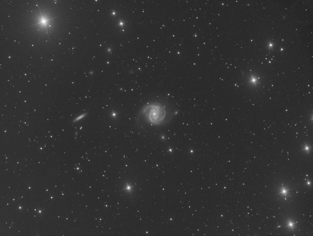 M 105 (au centre) – NGC 3384 (en haut à gauche) – NGC 3389 (en bas à gauche)