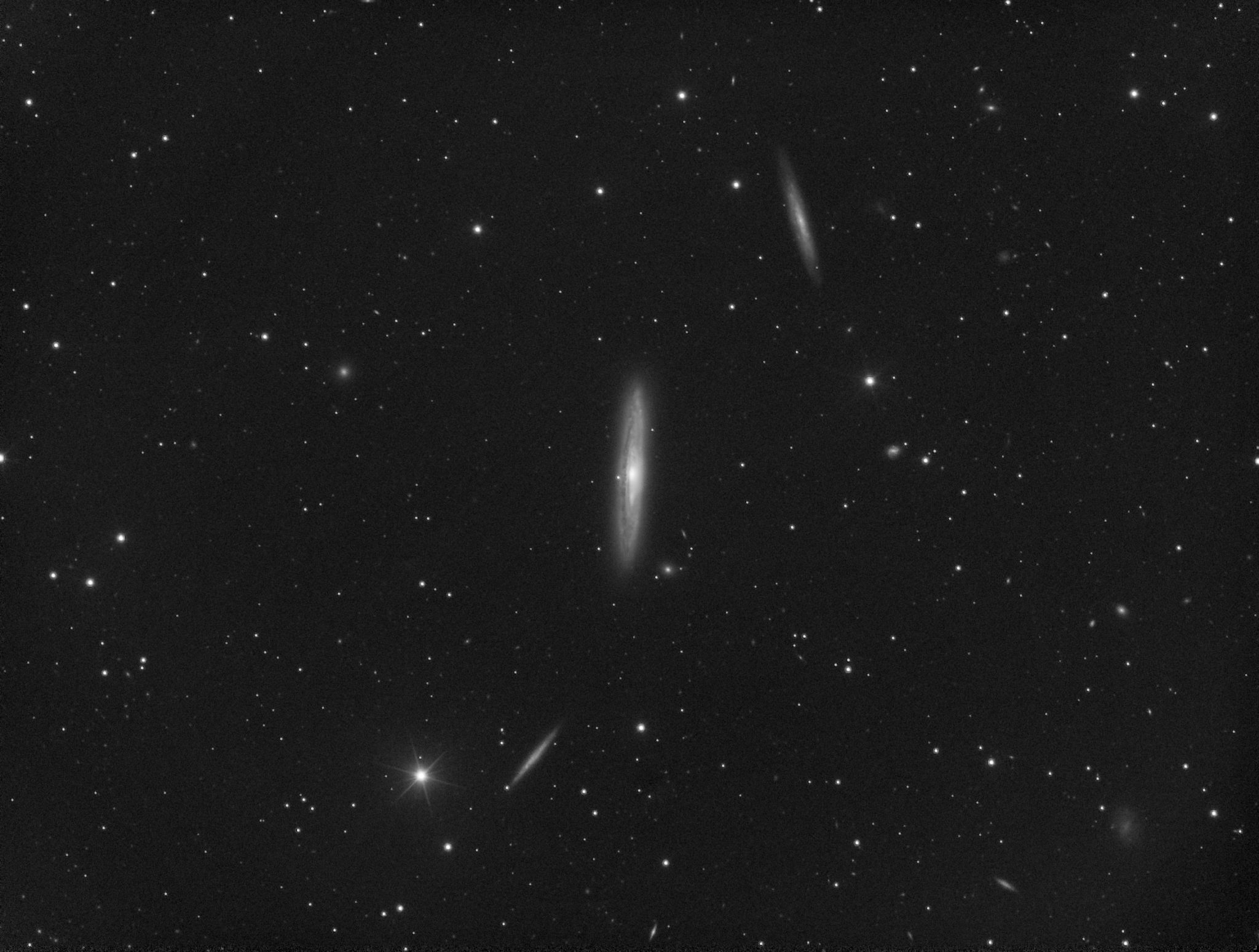 NGC 3607 (en bas au centre) – NGC 3608 (en haut au centre) – NGC 3605 (en bas , à droite de NGC 3607)