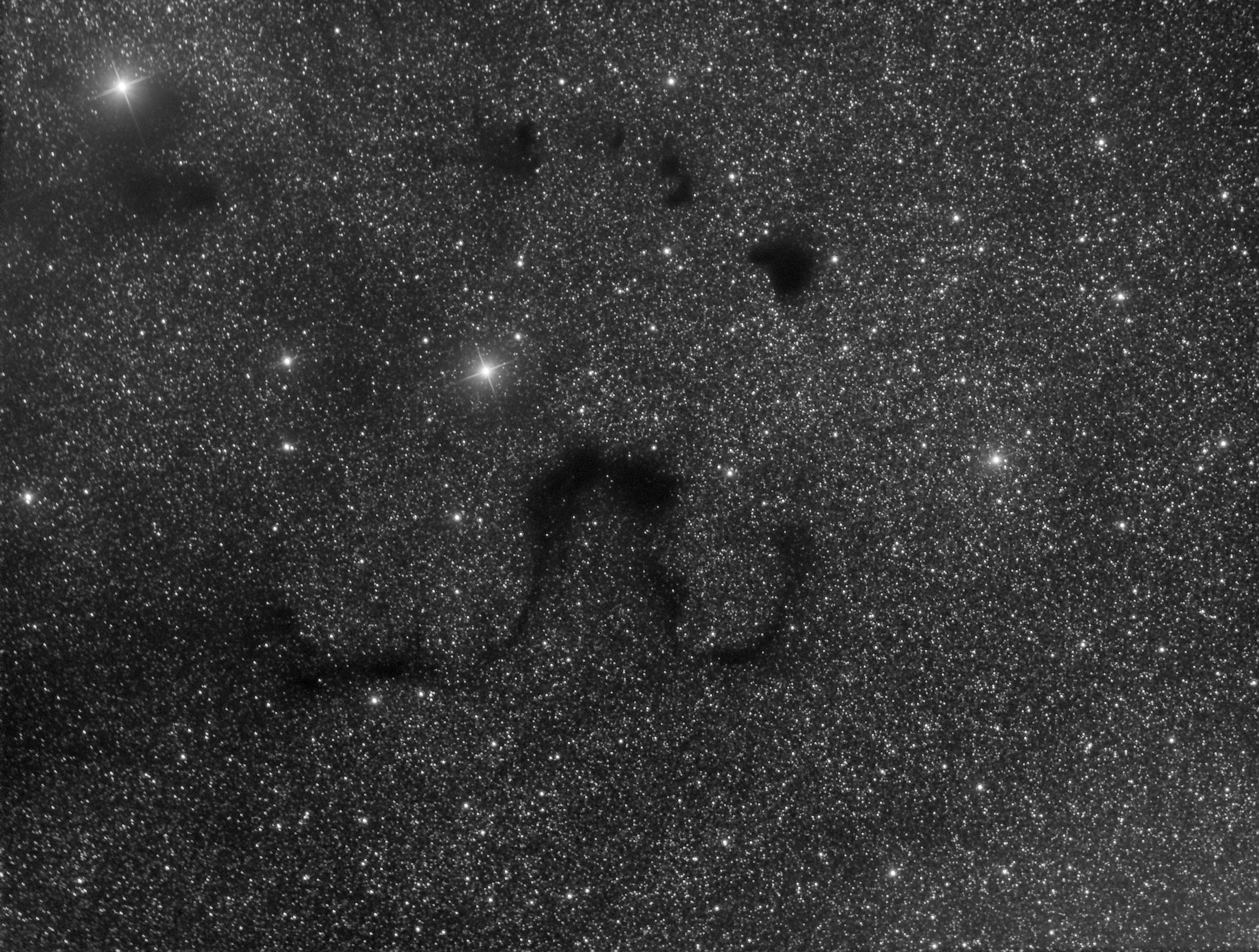 « Cluster NGC 6520 and the strangely shaped dark cloud Barnard 86 » par ESO — http://www.eso.org/public/images/eso1307a/. Sous licence CC BY 4.0 via Wikimedia Commons.
