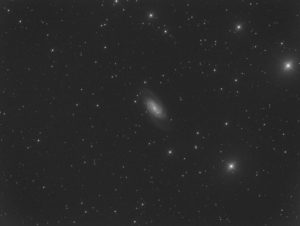M 105 (au centre) – NGC 3384 (en haut à gauche) – NGC 3389 (en bas à gauche)