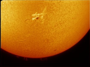 Le soleil était au rendez-vous de la séance du samedi. Cela tombait bien, puisqu’il s’agissait de l’observer… Nous avons pour l’occasion pu tester la dernière acquisition du club, une lunette PST Coronado, ainsi que l’observation au travers d’un prisme de Herschel. Quel spectacle magnifique, même si le soleil était un peu moins taché que ces dernières semaines.