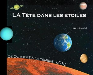 Trois séries de panneaux intitulés « 1000 milliards de planètes », « Espace : voyage extraordinaire » et « Par Toutatis » seront exposés ainsi que notre carte interactive de la Lune, l’aquarium des densités, le solarscope, le télescope russe, quelques objets et livres d’astronomie et enfin nos plus belles photos du ciel et de nos instruments.