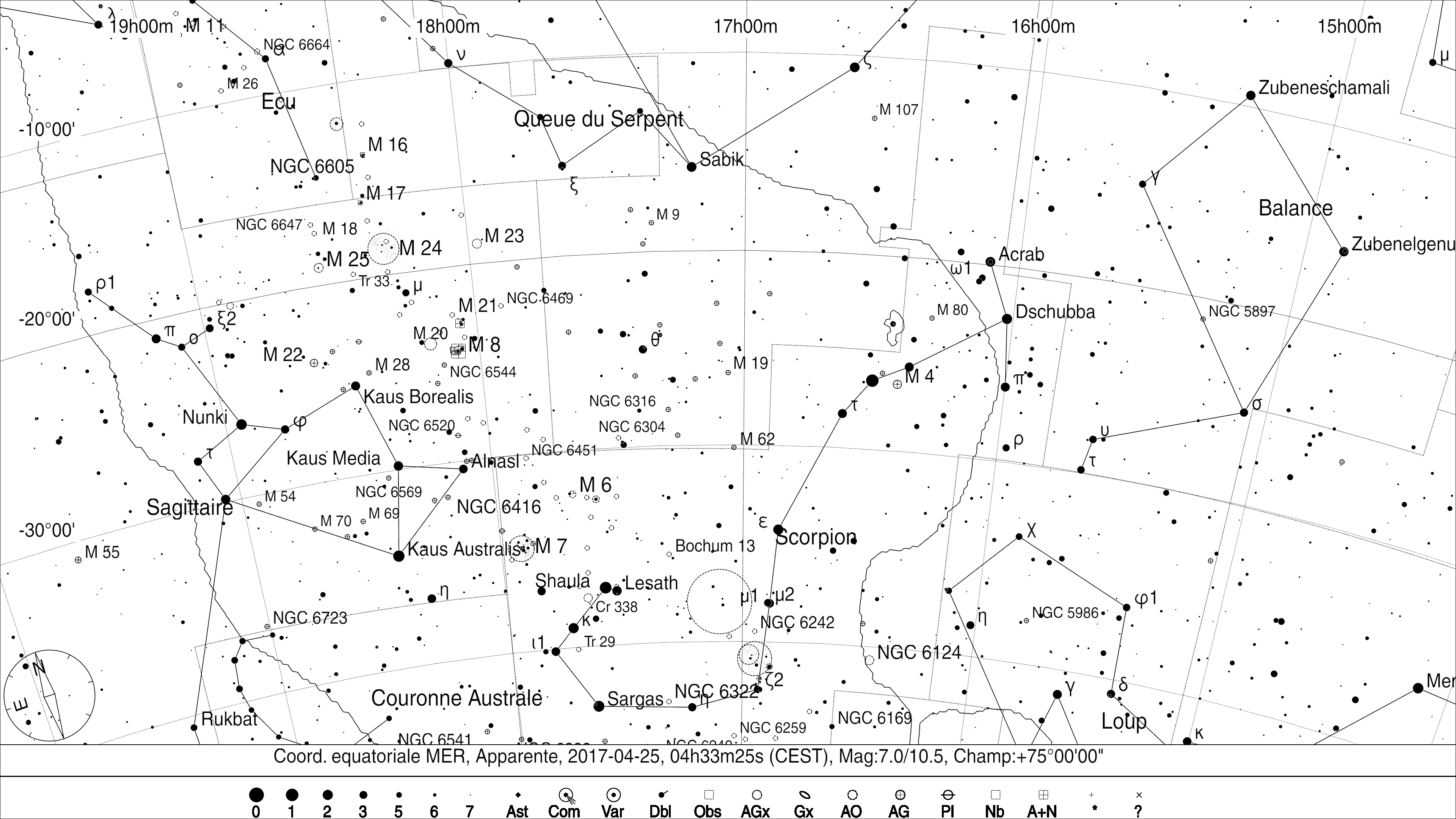 Repérer Messier 19 dans la constellation d’Ophiuchus