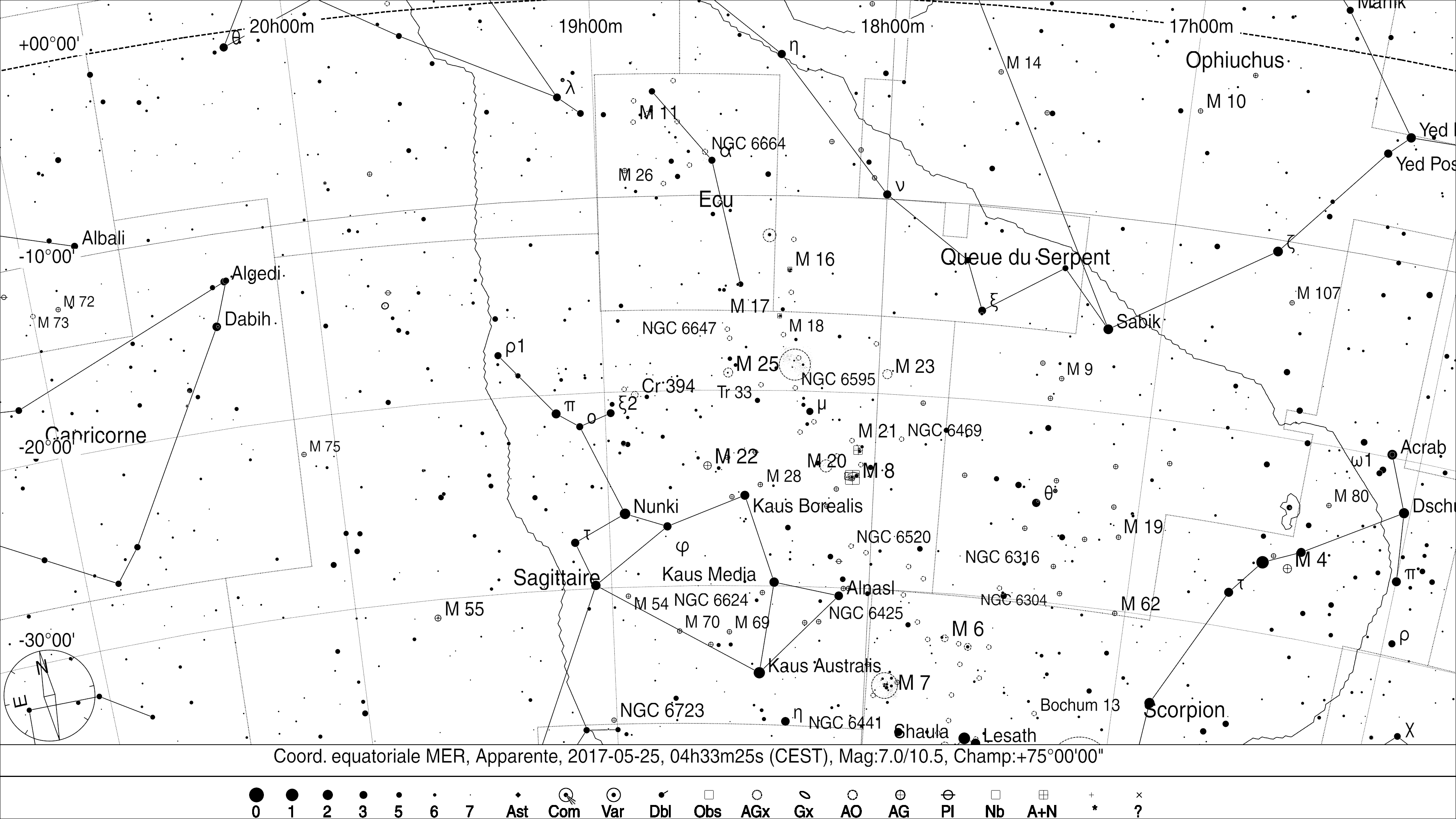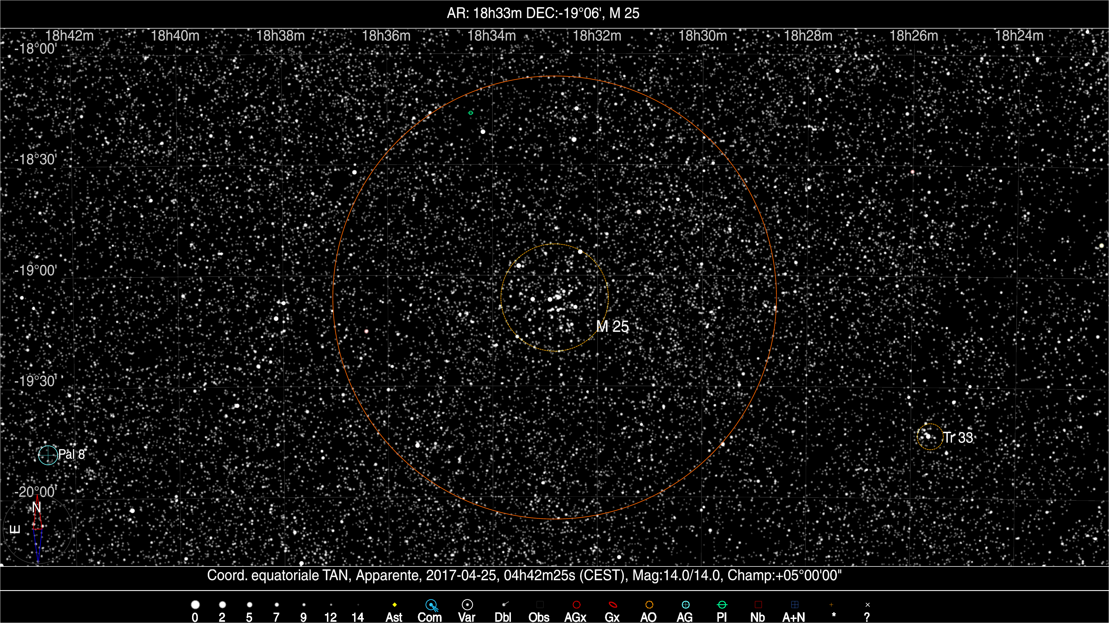 Repérer Messier 25 dans la constellation du Sagittaire