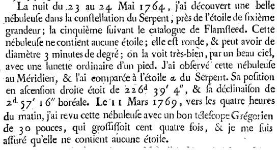M 5 est un amas globulaire, cinquième entrée du catalogue Messier qu’il intégra en 1764, situé dans la tête de la constellation du Serpent. L’amas fut découvert en 1702 par Gottfried Kirch. Indépendamment, Messier le (re)découvrit le 24 mai 1764.