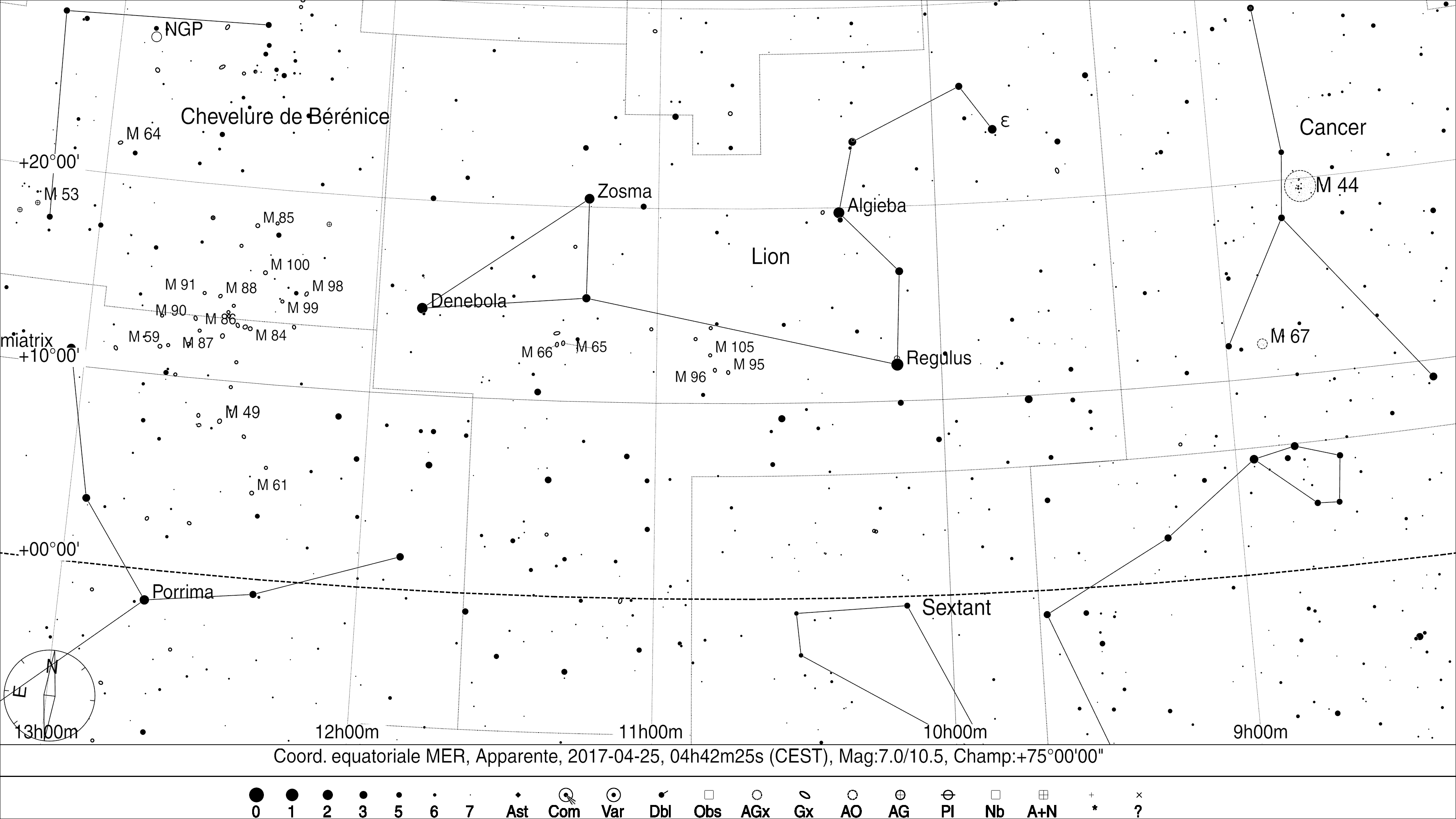Coordonnées : 10 43 57 (AD) +11 42 13 (DEC)