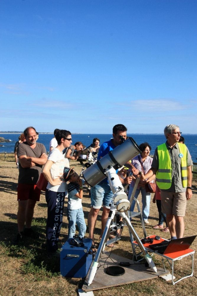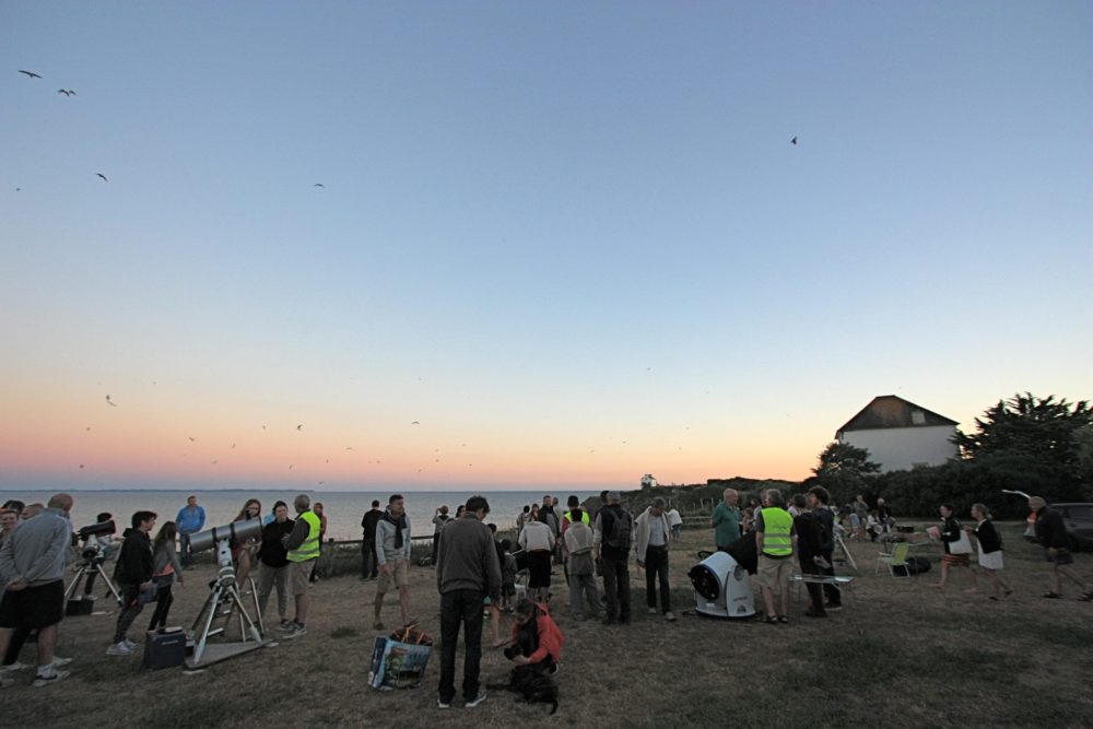 Cette année nous convions toutes celles et ceux qui souhaitent nous rejoindre, astronomes néophytes ou chevronnés, le samedi 4 août au Pouldu (commune de Clohars-Carnoët – 29), sur l’esplanade des rochers (GPS : 47.765976 / -3.549903) face à l’île de Groix.