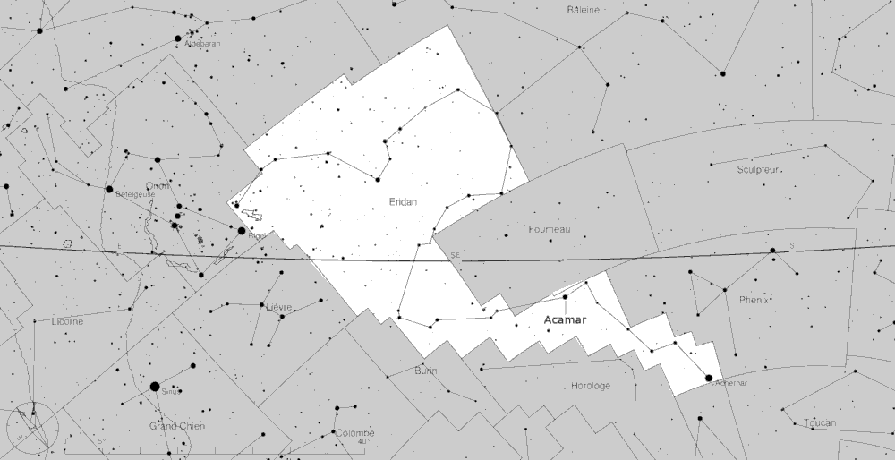Infos : Theta Eridani est la troisième étoile la plus brillante de la constellation de l’Eridan. Il s’agit d’une étoile double située à 161 années lumière, dominée par une géante de magnitude +3,2 et de type spectral A3IV-V, 96 fois plus lumineuse, 16 fois plus large et 2,6 fois plus massive que le Soleil. Son compagnon situé à 8,3 secondes d’arc est une naine blanche de type spectral A1 et de magnitude +4,4, 36 fois plus lumineuse et 2,4 fois plus massive que notre étoile.