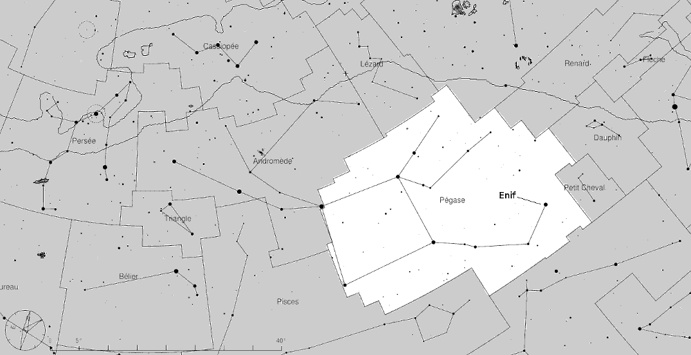 Infos : Epsilon Pegasi (ε Peg / ε Pegasi) est une étoile dans la constellation de Pégase. Elle porte aussi le nom traditionnel d’Enif.