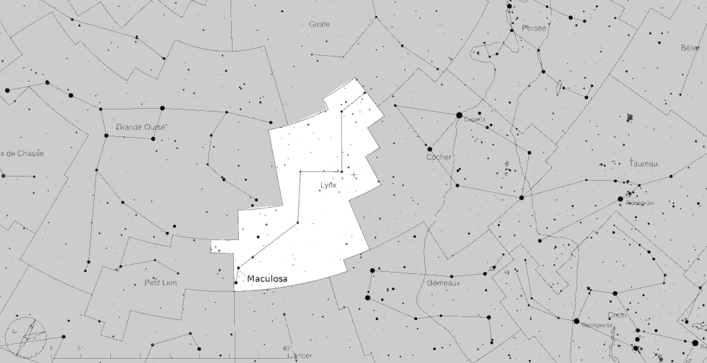 Le nom Maculosa vient de l’astronome Johannes Hevelius faisant référence au lynx, qu’il pensait être tacheté comme un léopard.