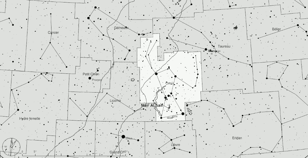 Voisinage : Rigel, Saiph, Alnitak, Alnilam, Mintaka